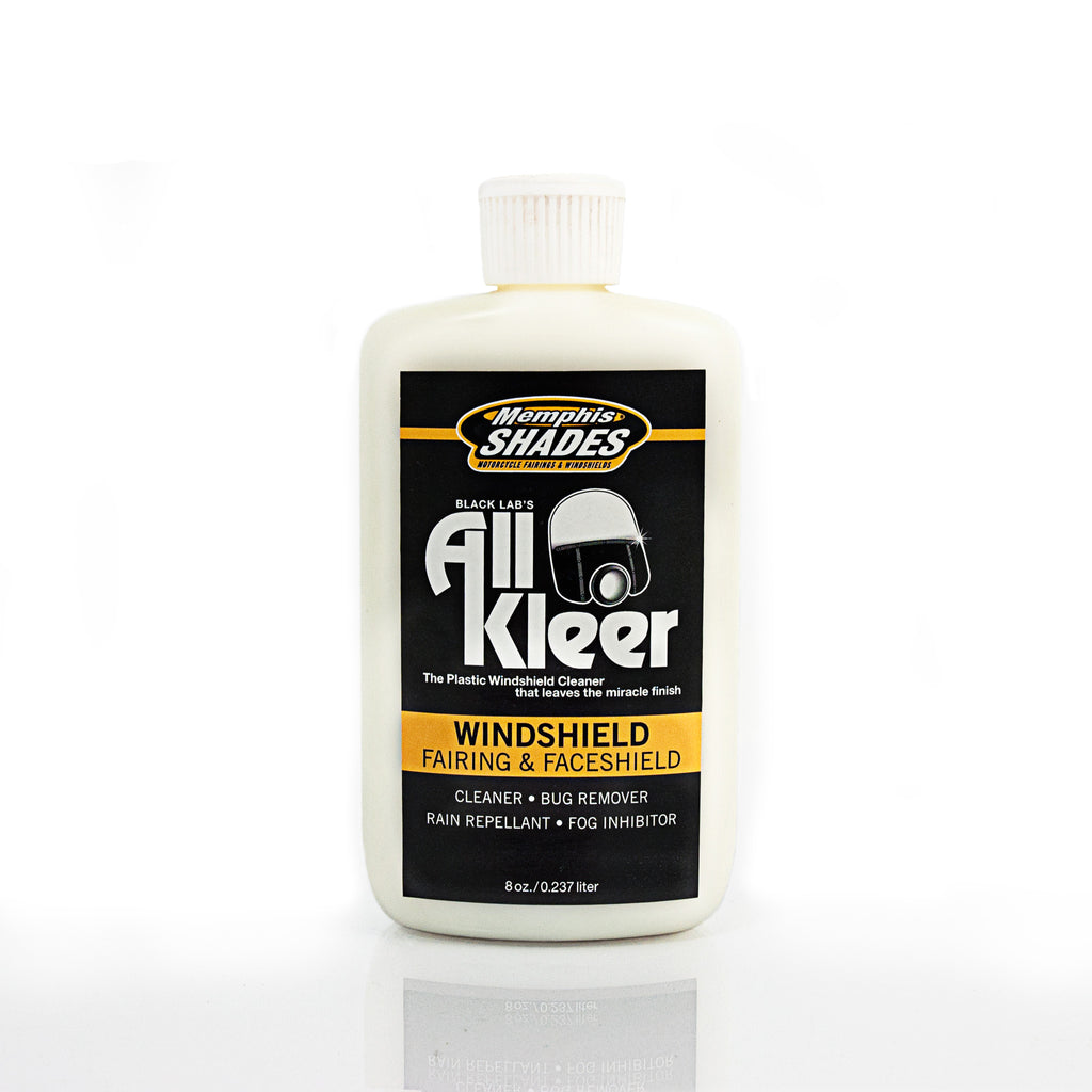 Memphis Shades All Kleer is a highly effective, unique motorcycle windshield and/or fairing cleaner & polish, that cleans, polishes, repels rain and inhibits fog all while leaving a super-slick finish. Works great on Visors!