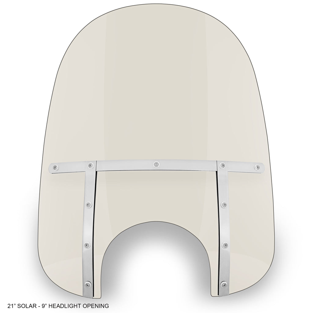 The Memphis Fats features classic American styling with 4 different color options, a 50 state DOT approved “Solar” and clear. At 22” wide and available in 5 different heights from 13 – 21”, if you are looking for a full coverage windshield, the Memphis Fats is the right one for you!