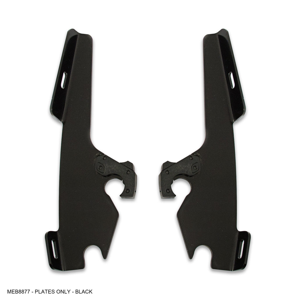 Trigger-Lock™ Mounting Kits consist of anchoring hardware (the part that stays on the bike) and mounting plates (the part that connects the fairing or windshield to the bike). “Plates Only” kits can be used when you already have Memphis Shades Trigger-Lock anchoring hardware on your bike. For example, if you already run, say, a Gauntlet fairing, you could mount a windshield or another fairing using “Plates Only”.