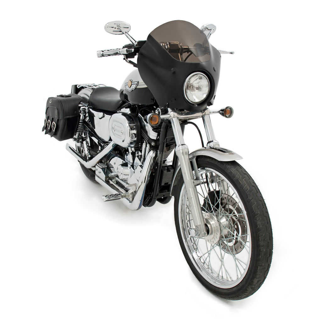 Minimalist style and maximum function, that is the Gauntlet Fairing. When looking for the perfect Fairing for your Harley Davidson Dyna or Sportster, the Gauntlet is the answer. A stylish quarter fairing, the Gauntlet provides the style you want and torso protection that you need for extended mile rides. The Gauntlet comes in a Gloss black Class-A finish which can also be easily painted.
