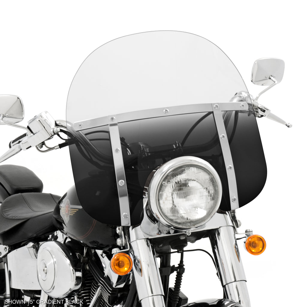 The Memphis Fats features classic American styling with a 50 state DOT approved “Solar” and clear. At 22” wide and available in 7 different heights from 13 – 21”, if you are looking for a full coverage windshield, the Memphis Fats is the right one for you!