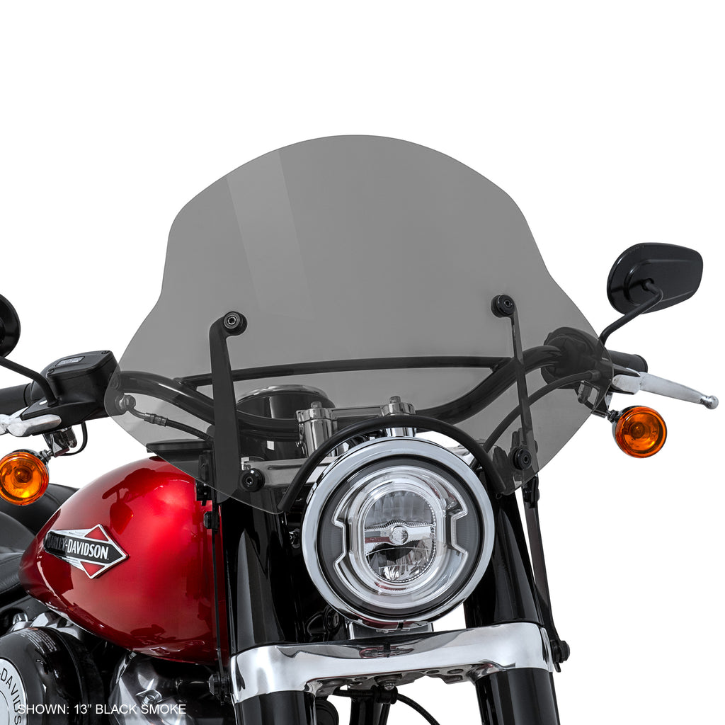 The Speed Demon Sportshield gives you the fast looks and great protection that you want in a motorcycle windshield for your 2018 - 2021 Harley-Davidson FLSL Softail Slim. With it's small winged design, this sportshield is designed to give riders a sleek, stylish, and effective windshield. The Speed Demon is available in four NEW heights of 13”, 15”, 17”, or 19” - above the headlight, and measuring 22” wide. Fast style, great looks and great fit, the Speed Demon delivers it all.