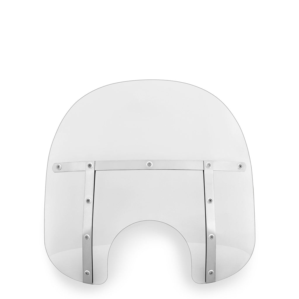 The windshield is constructed from Lucite brand acrylic for excellent optics and durability. The windshield “straps” are polished stainless steel with CNC-machined billet aluminum fittings and stainless steel socket-head screws, so nothing will ever rust or corrode.