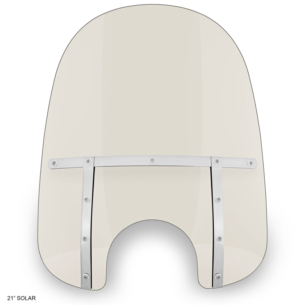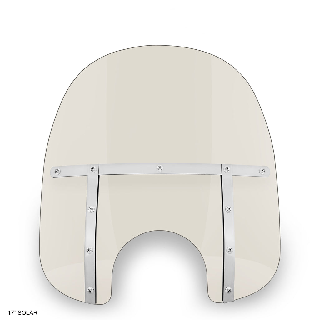 The Memphis Fats features classic American styling with, a 50 state DOT approved “Solar” and clear. At 22” wide and available in 7 different heights from 13 – 21”, if you are looking for a full coverage windshield, the Memphis Fats is the right one for you!
