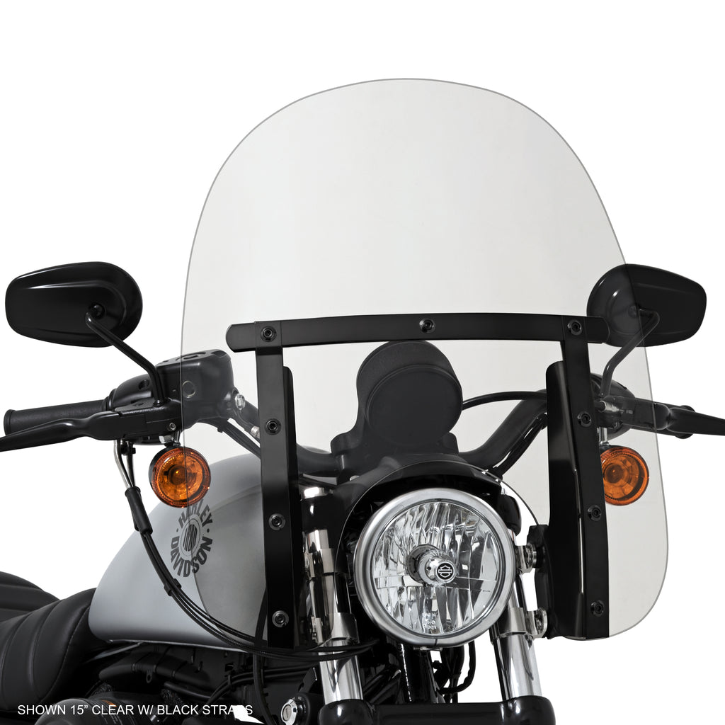The Memphis Slim has all the same styling as the ever-popular Memphis Fats, just slimmed down. Measuring 18" wide, the Slim delivers classic American windshield styling in a narrower profile that complements the look of your Iron 883.