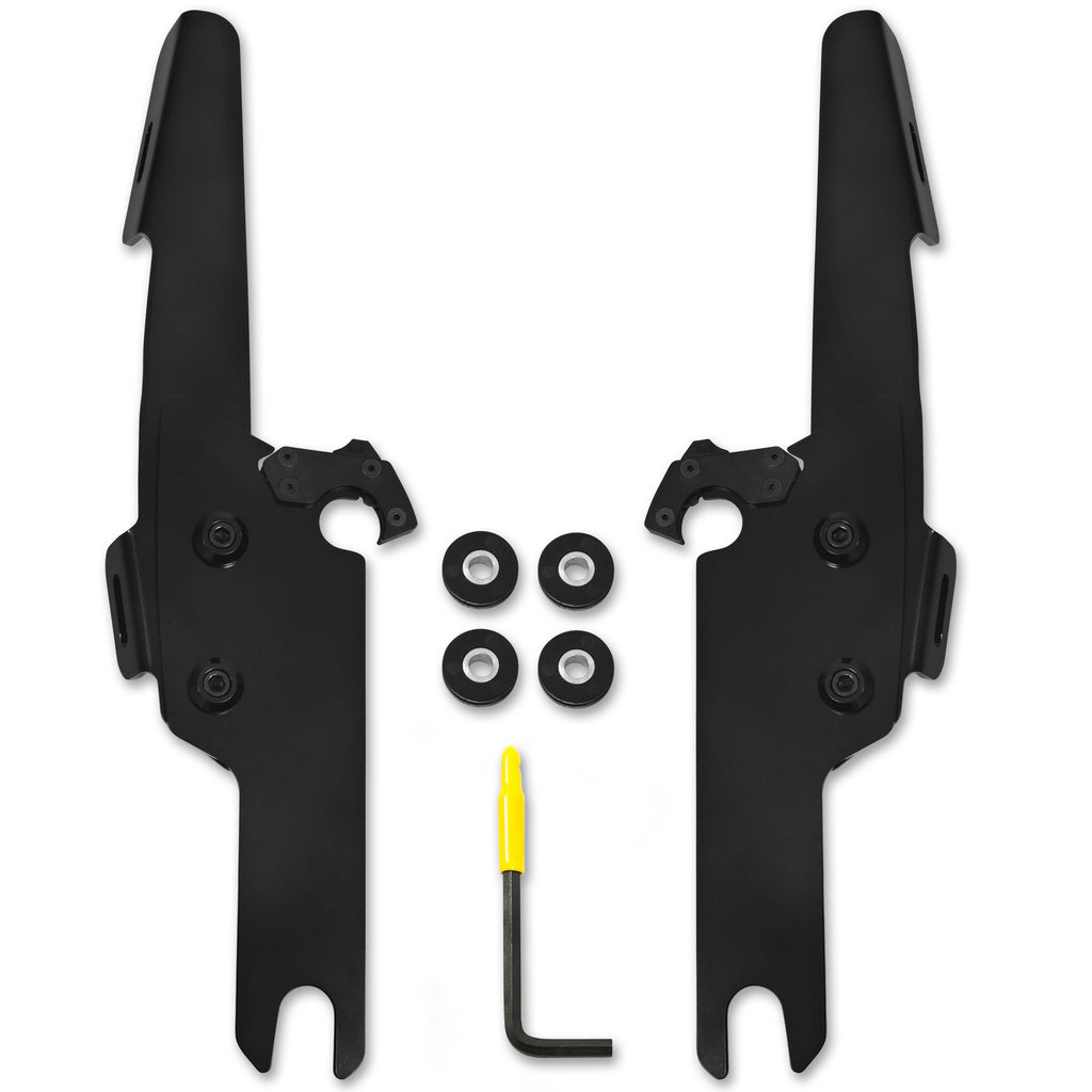 The revolutionary Trigger-Lock mounting hardware features an innovative system that allows you to quickly and easily remove your windshields without the use of any tools. Each kit is model specific and custom-fit to each style of bike for a truly no-hassle installation.