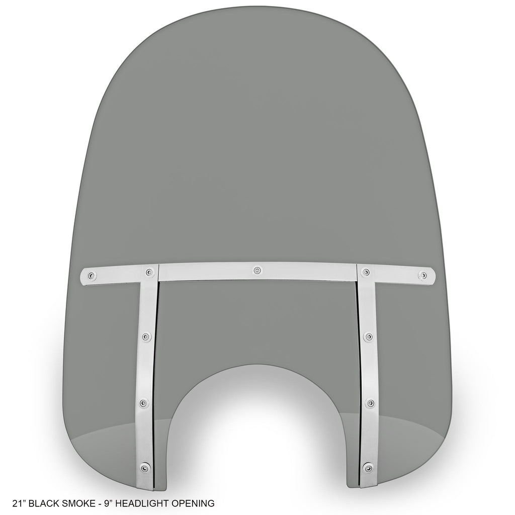 The Memphis Fats features classic American styling with 4 color options, a 50 state DOT approved “Solar” and clear. At 22” wide and available in 5 different heights from 13 – 21”, if you are looking for a full coverage windshield, the Memphis Fats is the right one for you!