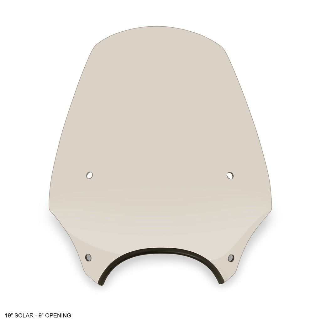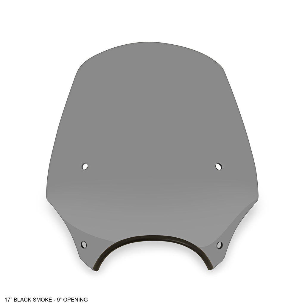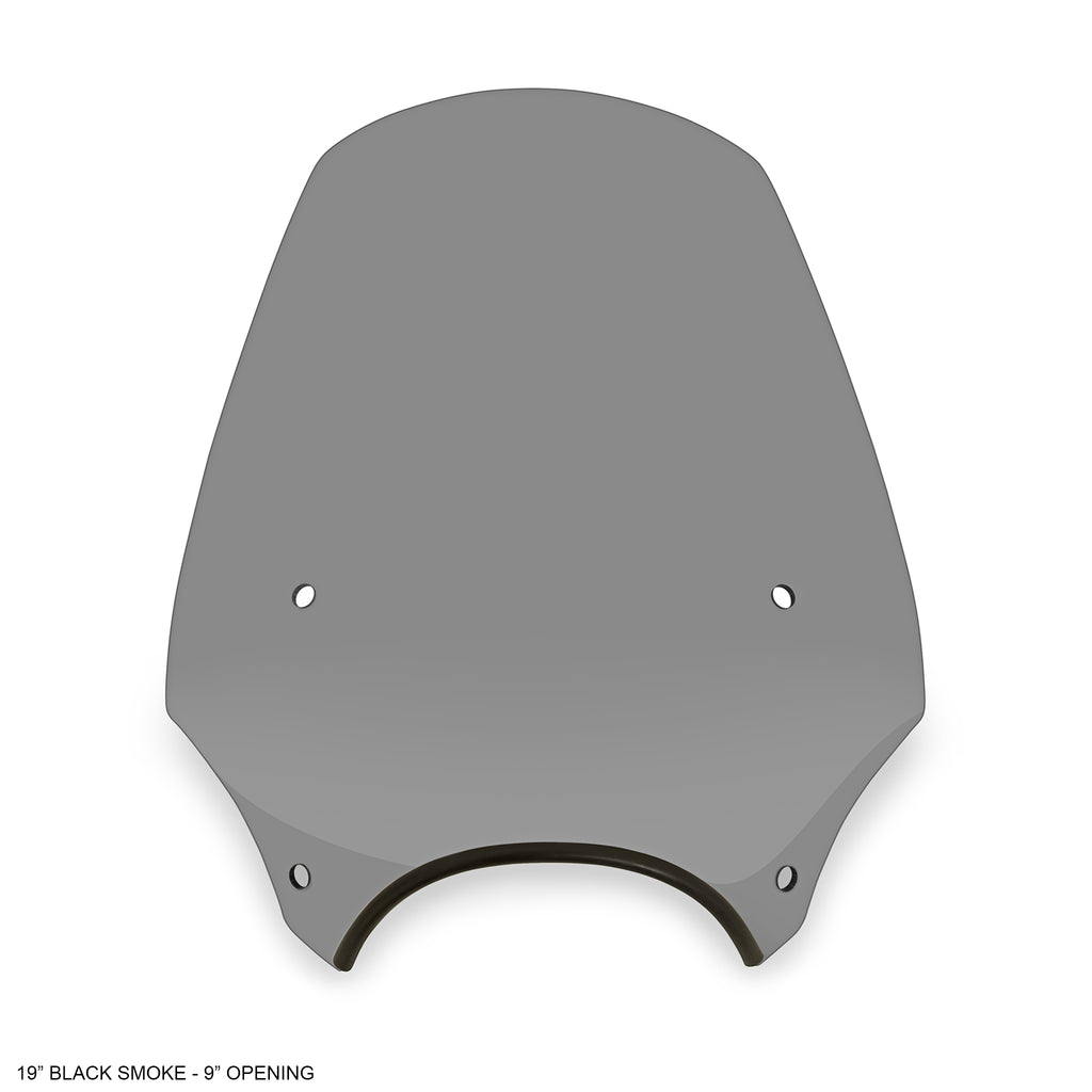 The El Paso Sportshield is the most versatile sportshield in our line up. The El Paso offers plenty of protection with a wide variety of heights - from 13" to 19" above the headlight. Now available in a new 9" headlight opening along with the original 7" headlight opening for bikes with 5 ¾”-7” headlights. The versatility keeps going with two NEW shades of black, Black Smoke and Dark Black Smoke. What sets the El Paso apart is the lower cut outs. Designed to work with bikes with handlebar mounted turn signals, the El Paso's cut out's also celebrate a minimalist style that looks great on your cruiser.