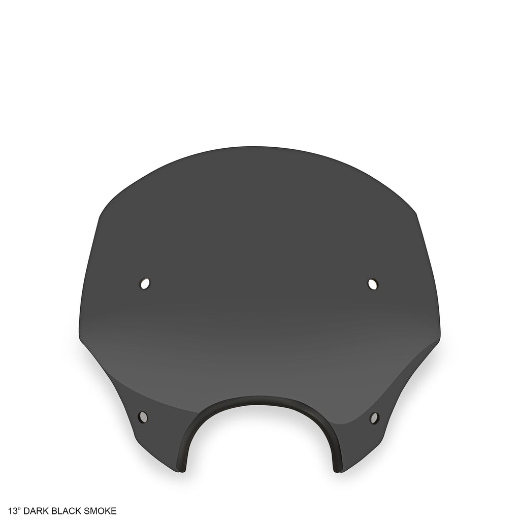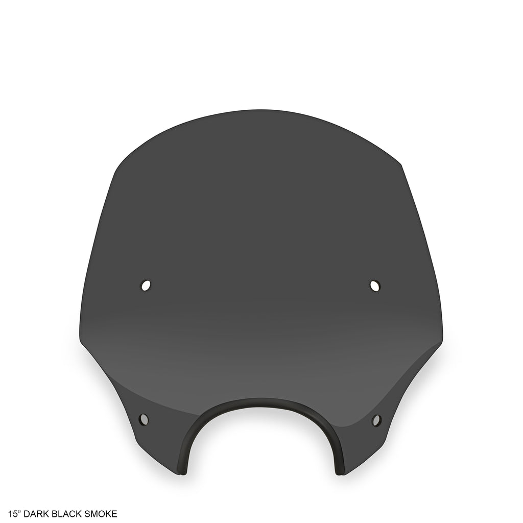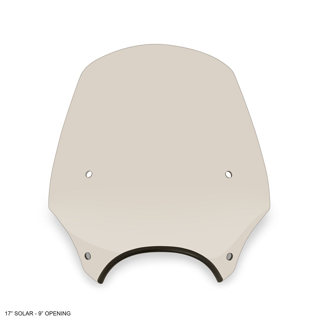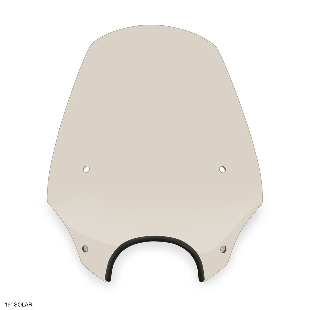 The El Paso Sportshield is the most versatile sportshield in our line up. The El Paso offers plenty of protection with a wide variety of heights - from 13" to 19" above the headlight. Now available in a new 9" headlight opening along with the original 7" headlight opening for bikes with 5 ¾”-7” headlights. The versatility keeps going with two NEW shades of black, Black Smoke and Dark Black Smoke. What sets the El Paso apart is the lower cut outs. Designed to work with bikes with handlebar mounted turn signals, the El Paso's cut out's also celebrate a minimalist style that looks great on your cruiser.