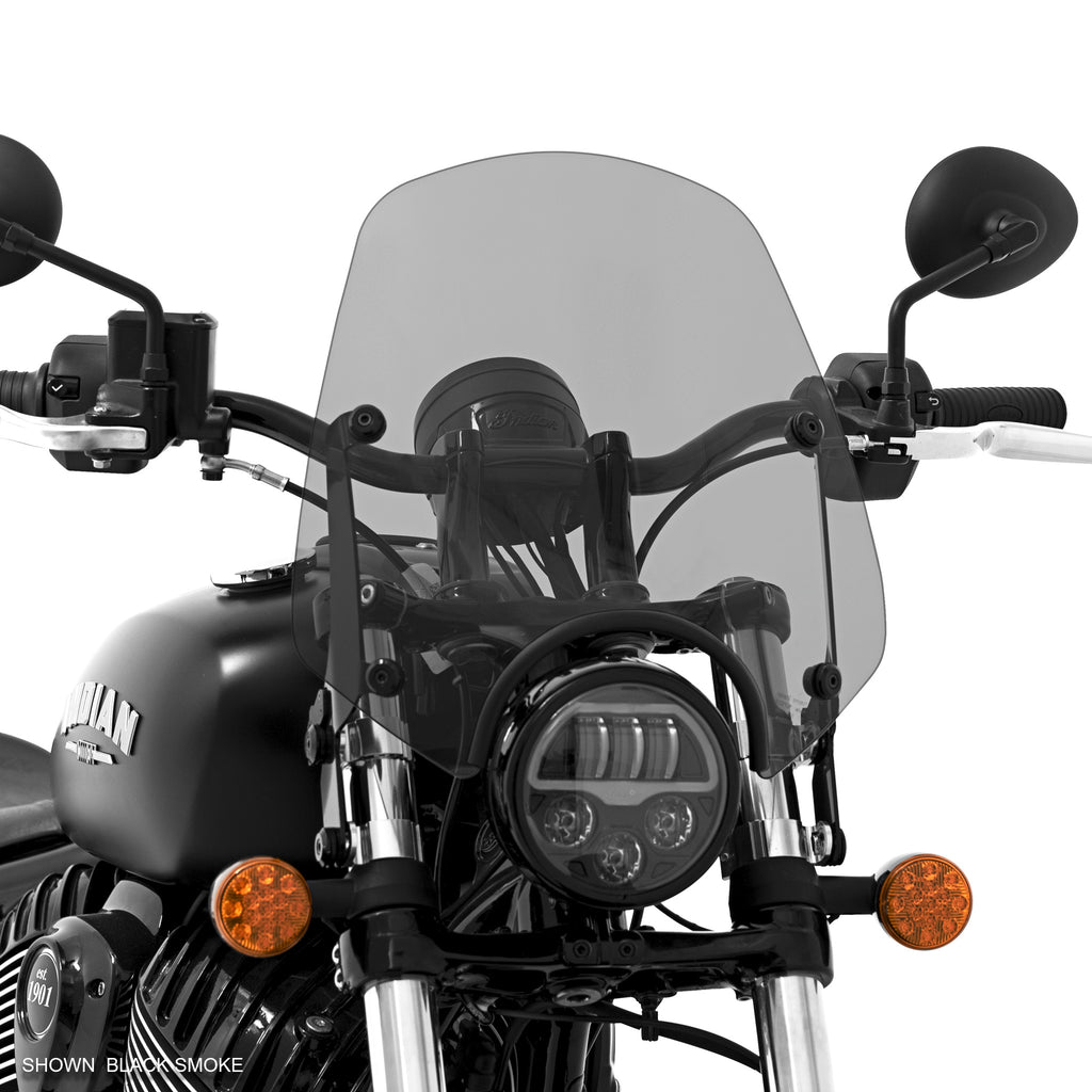 The Del Rey is a minimalist shield for just the right amount of protection and style. With its 13" height from the top of the headlight cut-out, it is the smallest shield in our Sportshield family. If you are looking for a small shield for just the right amount of wind protection, the Del Rey is your answer.
