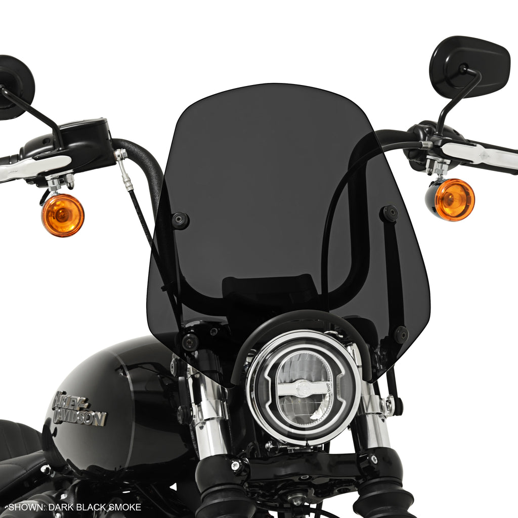The Del Rey is a minimalist shield for just the right amount of protection and style. With its 13" height from the top of the headlight cut-out, it is the smallest shield in our Sportshield family, yet still feels right at home on the HD FXBB Softail Street Bob. The Del Rey is a great option for taking a bit of wind off your torso but still leaving that feeling of freedom of the open road.