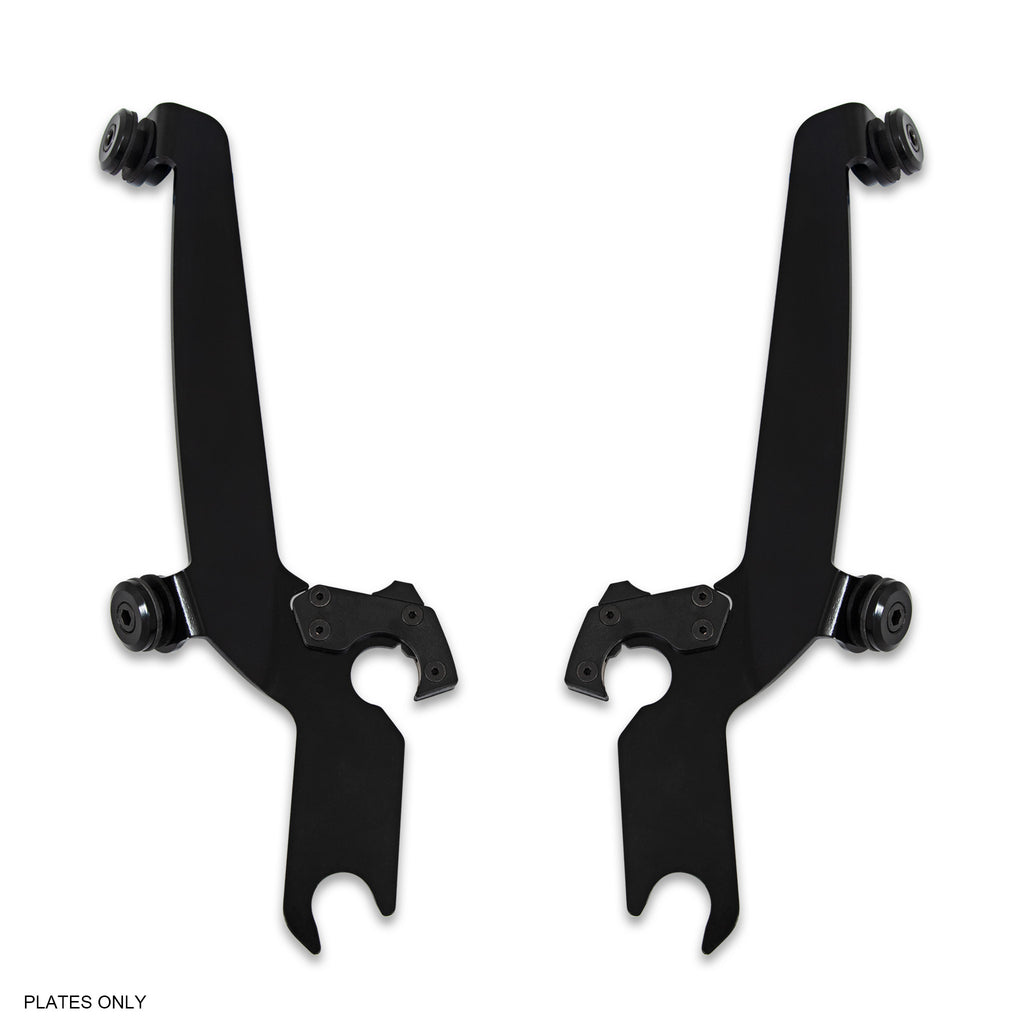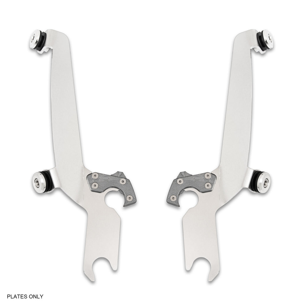 Trigger-Lock™ Mounting Kits consist of anchoring hardware (the part that stays on the bike), and mounting plates (the part that connects the fairing or windshield to the bike). “Plates Only” kits can be use when you already have Memphis Shades Trigger-Lock anchoring hardware on your bike. For example, if you already run, say, a Gauntlet fairing, you could mount a windshield or another fairing using “Plates Only”.