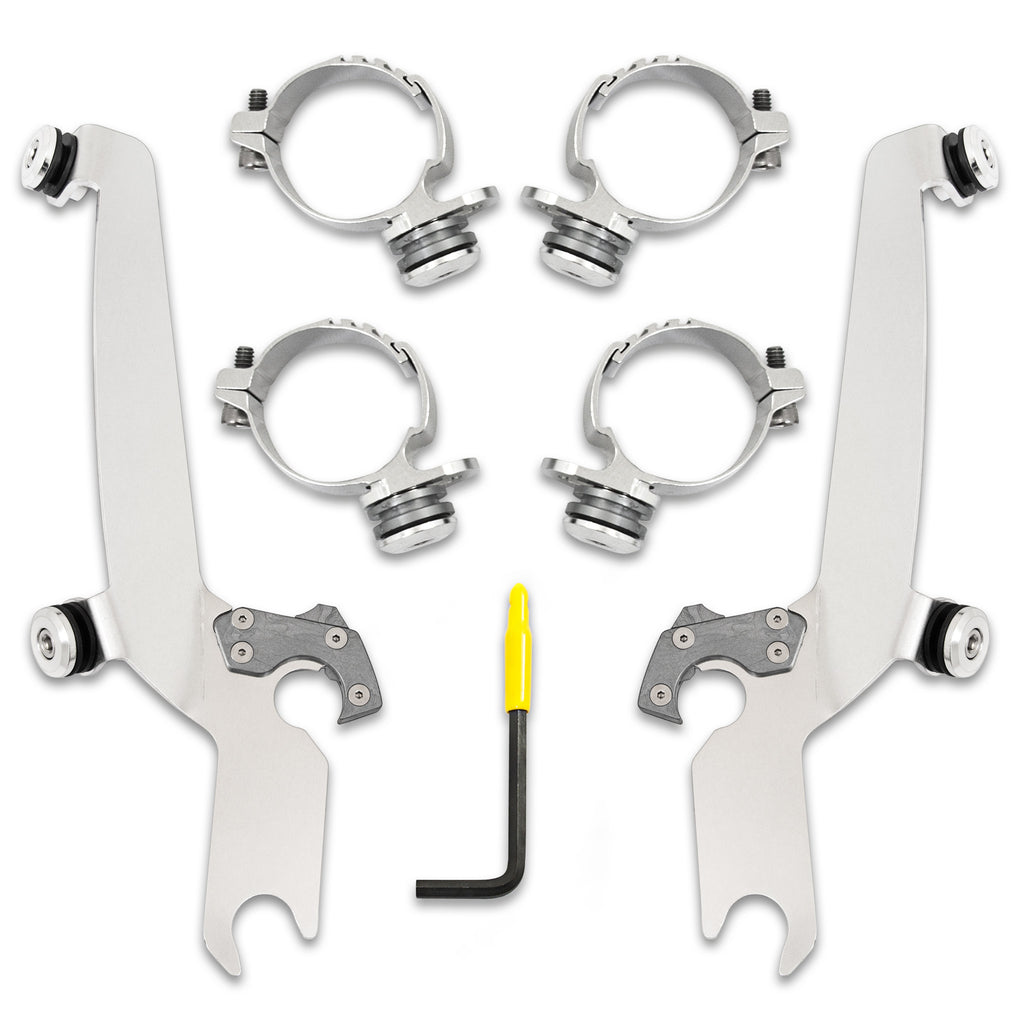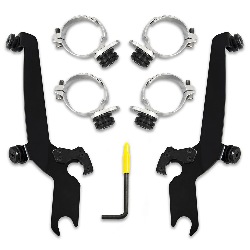 The revolutionary Trigger-Lock mounting hardware features an innovative system that allows you to quickly and easily remove your windshields without the use of any tools. Each kit is model specific and custom-fit to each style of bike for a truly no-hassle installation.