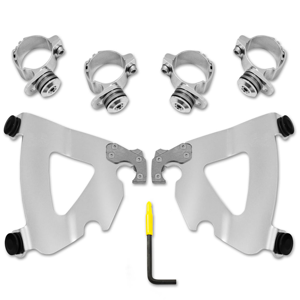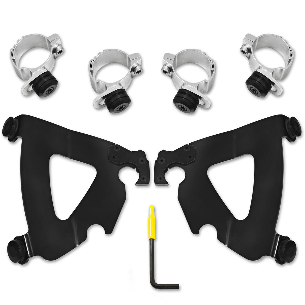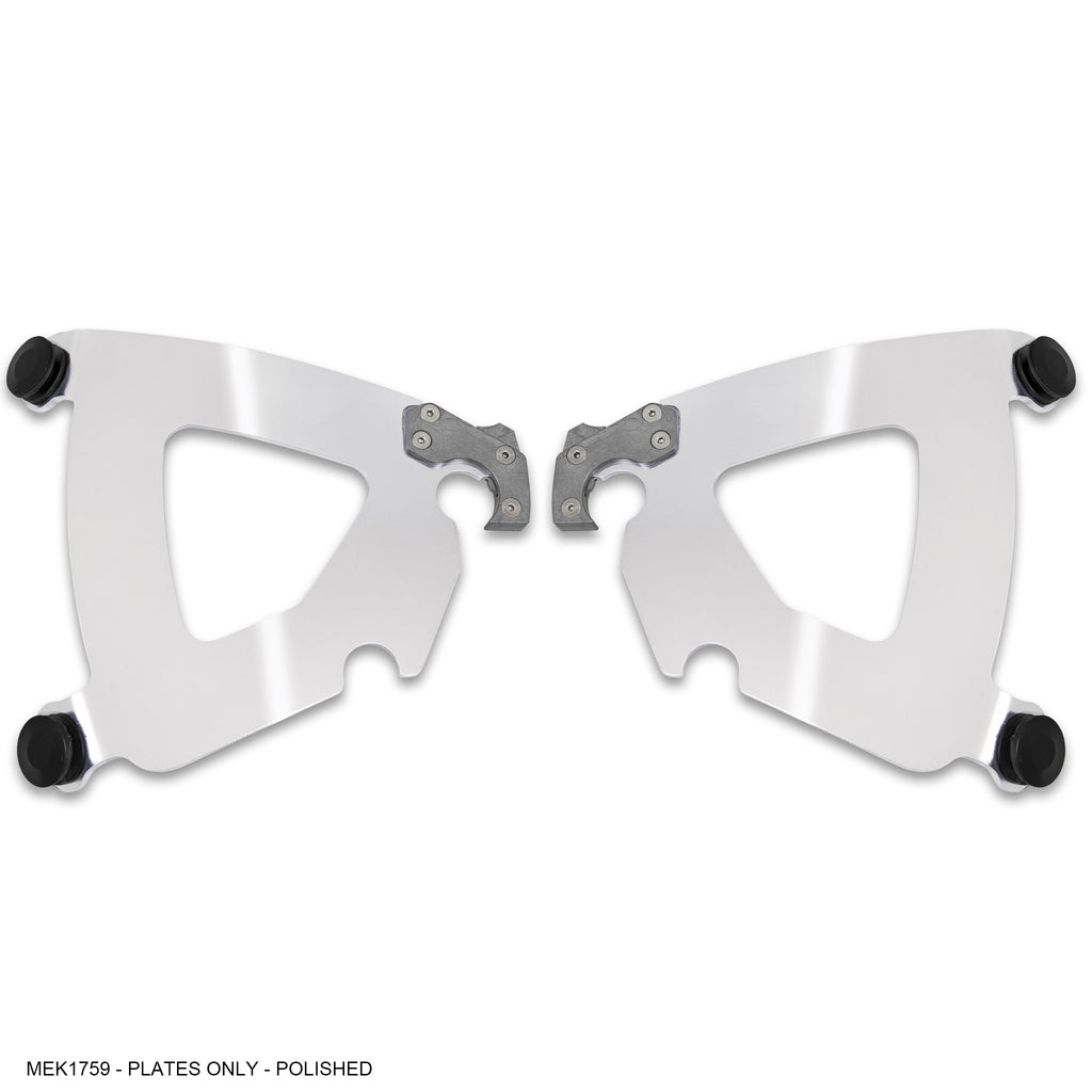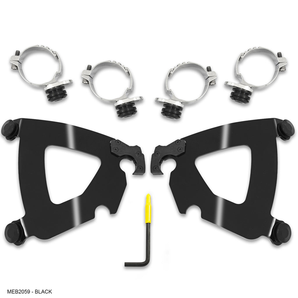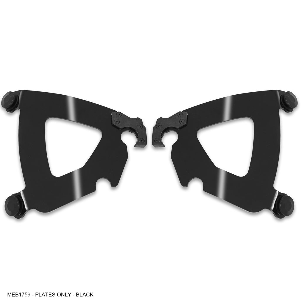 Trigger-Lock® Mounting Kits consist of anchoring hardware (the part that stays on the bike), and mounting plates (the part that connects the fairing or windshield to the bike). “Plates Only” kits can be use when you already have Memphis Shades Trigger-Lock anchoring hardware on your bike. For example, if you already run, say, a Gauntlet fairing, you could mount a windshield or another fairing using “Plates Only”.