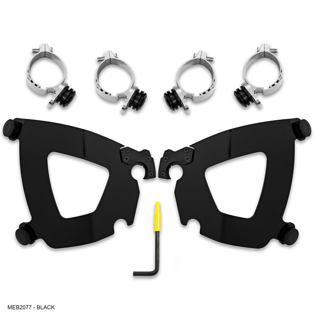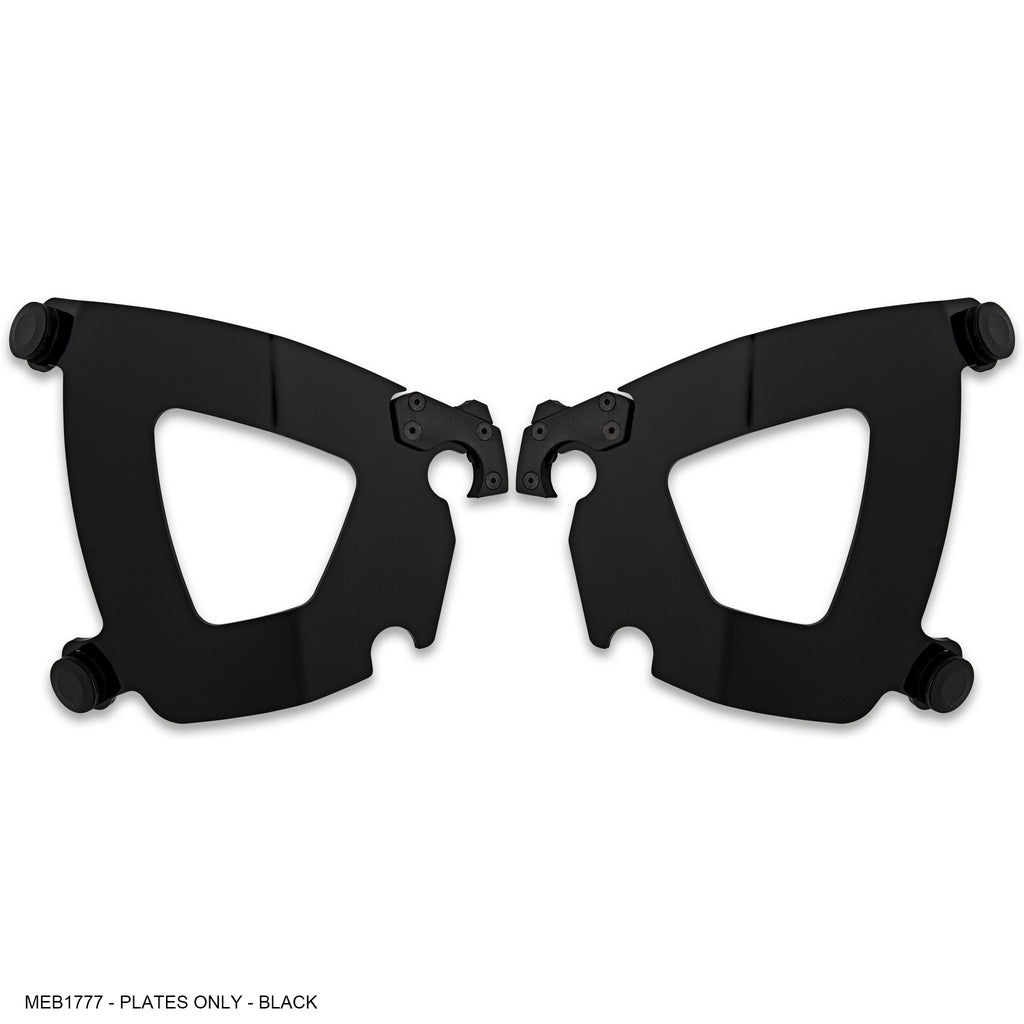 Trigger-Lock® Mounting Kits consist of anchoring hardware (the part that stays on the bike), and mounting plates (the part that connects the fairing or windshield to the bike). “Plates Only” kits can be use when you already have Memphis Shades Trigger-Lock anchoring hardware on your bike. For example, if you already run, say, a Gauntlet fairing, you could mount a windshield or another fairing using “Plates Only”.