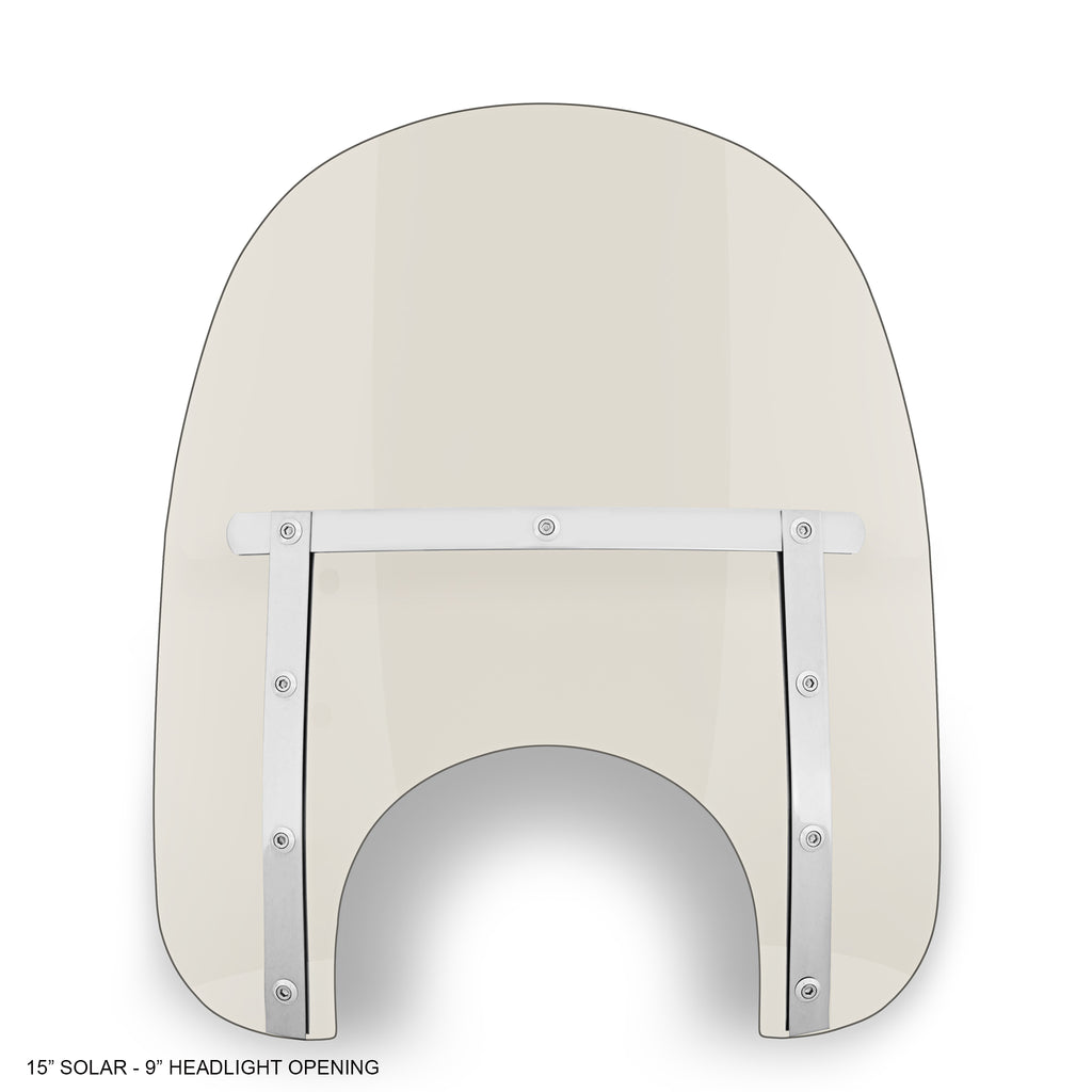 Constructed with the same quality and materials as its larger counterpart, the Slim offers the same timeless design with a tighter look while pushing a bit less wind for riders who prefer a more compact windshield.