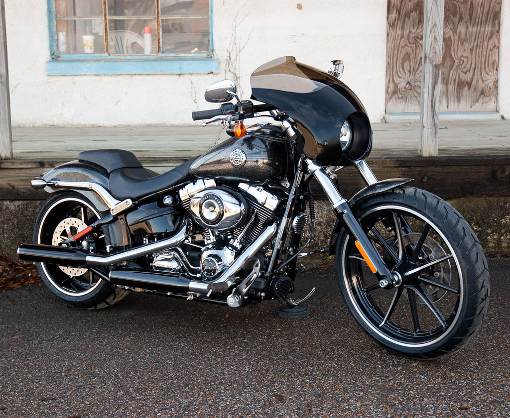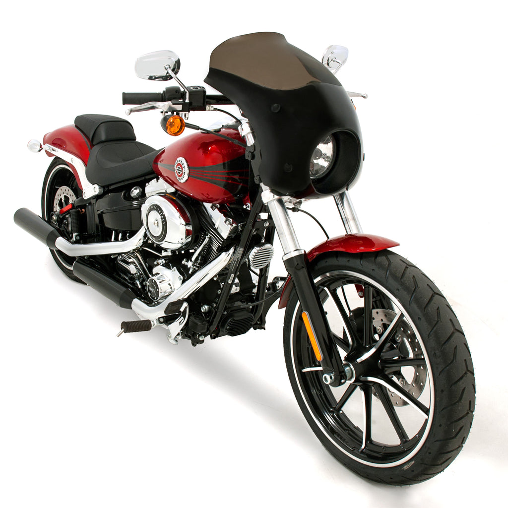 Our Bullet Fairing is a must have to complete the long, low, and powerful punch look of your Harley Davidson. Stylish yet functional, the Bullet provides wind protection to the torso area while keeping the rider's head in clean air. Using the Bullet Fairing, a rider will experience much less fatigue after a ride. Easily paintable to match your custom ride, the Memphis Shades Bullet is the choice for powerful style and excellent function.