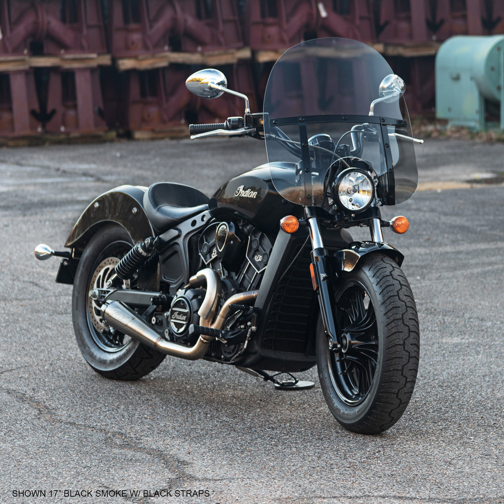 The Memphis Fats windshield features classic American styling with a 50 state DOT approved “Solar” and clear. At 22” wide and available in 5 different heights from 13 – 21”, if you are looking for a full coverage windshield, the Memphis Fats is the right one for you!