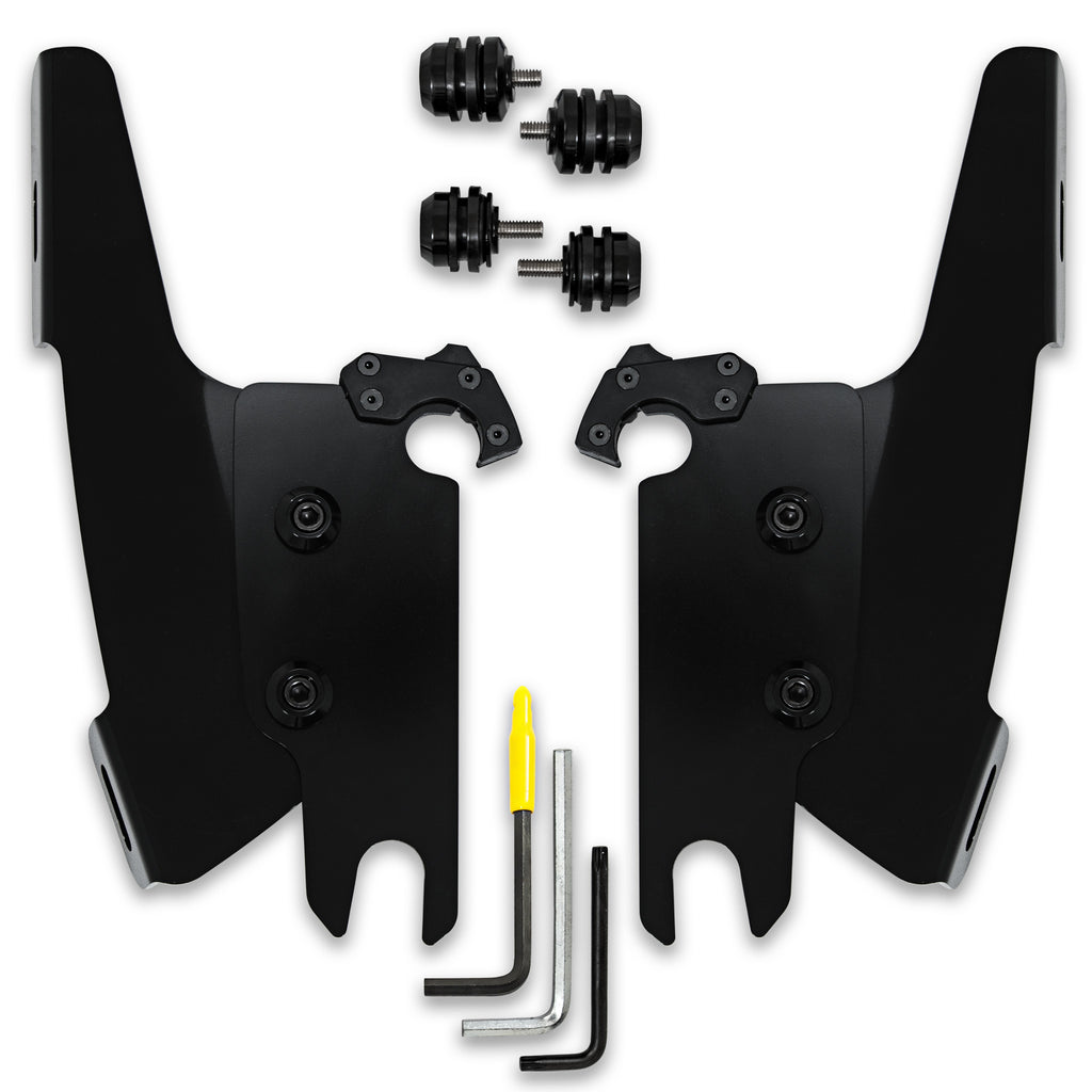 The revolutionary Trigger-Lock mounting hardware features an innovative system that allows you to quickly and easily remove your windshields without the use of any tools. Each kit is model specific and custom-fit to each style of bike for a truly no-hassle installation.