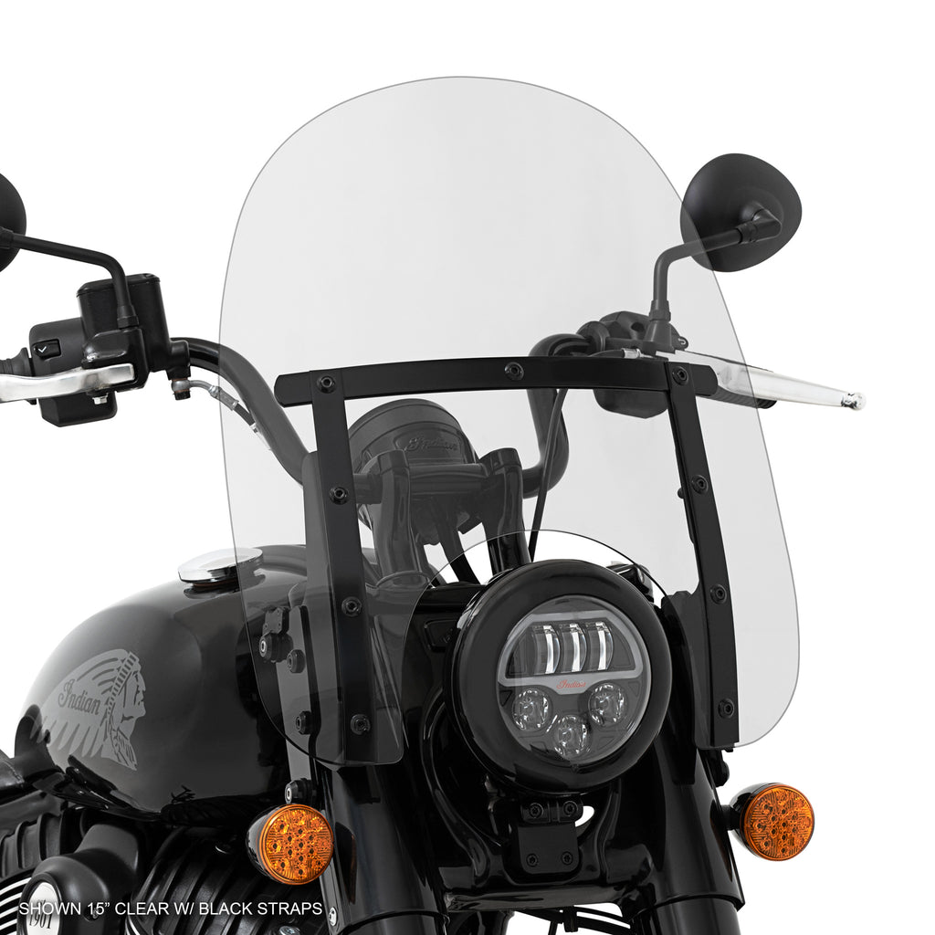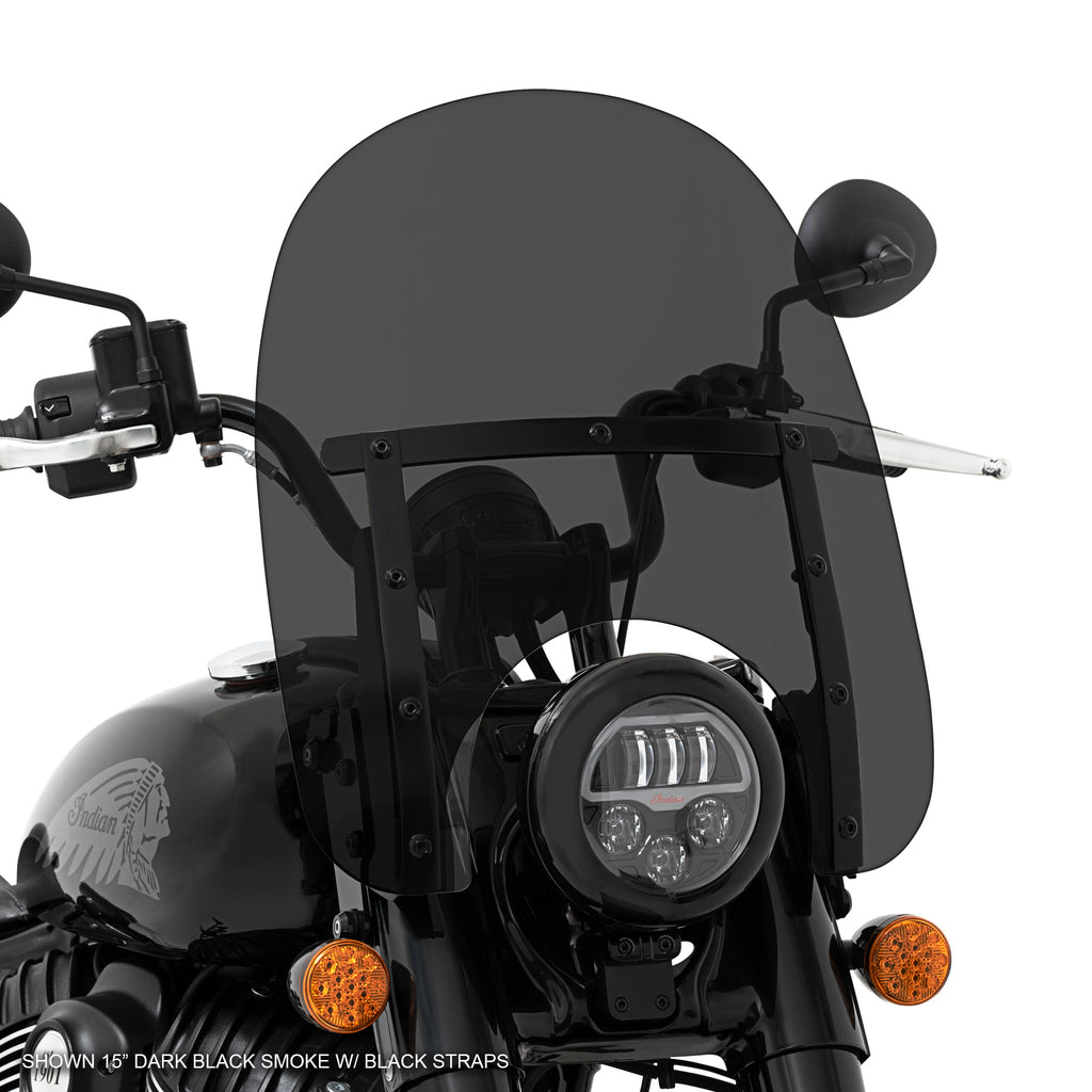 Add slimmed down classic styling and comfort to your Indian Chief Bobber or Chief Bobber Dark Horse with the Memphis Slim windshield. Memphis Slim has all the same styling as the ever-popular Memphis Fats, just slimmed down. Measuring just 18” wide, the Slim comes in 4 colors options, and 2 different heights, 15” and 17” tall.