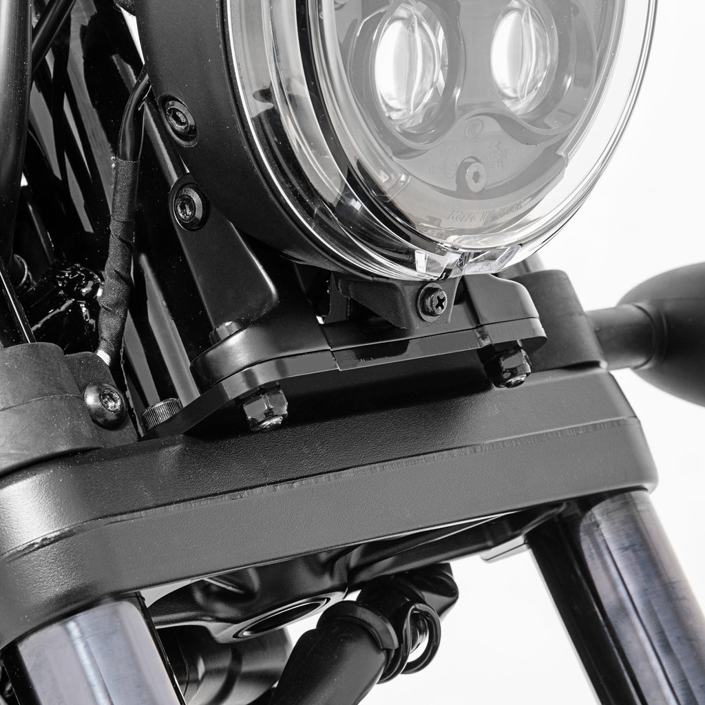 When adding a Batwing fairing or Gauntlet fairing to your 2021-2024 Honda Rebel 1100 you will need to move the headlight forward. Our ecoated black aluminum and stainless steel hardware moves the headlight forward 1.5” to 2".