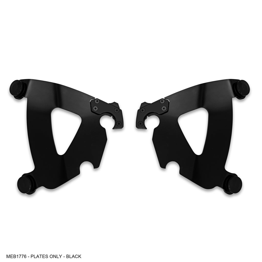 Trigger-Lock® Mounting Kits consist of anchoring hardware (the part that stays on the bike), and mounting plates (the part that connects the fairing or windshield to the bike). “Plates Only” kits can be use when you already have Memphis Shades Trigger-Lock anchoring hardware on your bike. For example, if you already run, say, a Gauntlet fairing, you could mount a windshield or another fairing using “Plates Only”.