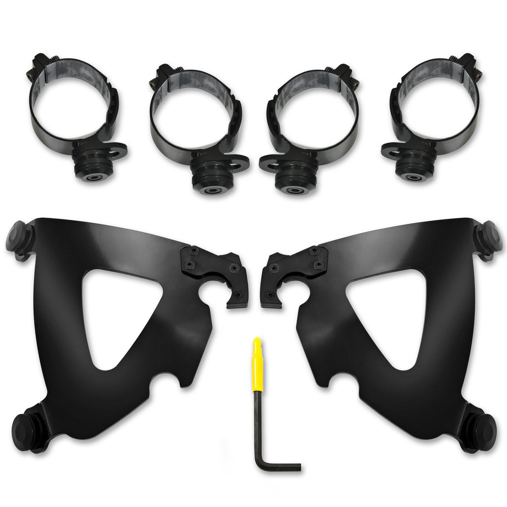 The revolutionary Trigger-Lock mounting hardware features an innovative system that allows you to quickly and easily remove your windshields without the use of any tools. Each kit is model specific and custom-fit to each style of bike for a truly no-hassle installation.